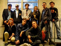 | | JazzgangstersTodennäköisin tuttavuus reggaemusiikin saralla ysikymmenlukulaisella nuorella oli Trenchtownin kasvatti Bob Marley, ja kokoelma-albumi "Legend". Itse olin tässä tilanteessa kevättalvella 1999, kun erään reggaeaiheisen keskustelun päätteeksi tuttu levykauppias kehotti saapumaan illalla kuulemaan suomalaista versiota aidosta Jamaikan soundista. Homman nimenä olin Tampereen veteraaniryhmien Jing & Jangsters ja Jazzgangsters yhteisesiintyminen Rocklubi Kerubin lavalla. Tämä oli ensikosketukseni elävään takapotkurytmiin, ja samalla hetki jolloin ymmärsin kyseisen rytmiikan, lämpimän saundin ja pitkä-äänisen, hieman haikean melodian yhdistelmän olevan mitä toimivin ja tunnevoimaisin. Jazzgangstersin rytmiryhmä polkee tasaisen hypnoottisesti takakenoista groovea jonka päälle kitara, erilaiset kosketinsoittimet ja torvet vuorottelevat asiaankuuluvissa takapotkuiskuissa. Yhtye soittaa omia ja muiden sävellyksiä, taittaen kipaleen kuin kipaleen reggae- ja skarytmeihin. Välillä torvisoolot piipahtavat jazzin maailmoissa, hetkittäin koko bändi painaa nimensä alkuosan mukaista musiikkia. Kunnes rytmiryhmä lyö takapotkun silmään ja hankalammin hahmotettava jazzrytmi onkin yht'äkkiä iloista, aurinkoista ja helposti tanssattavaa Jamaikan groovailua. Toiminta etenee hyvinkin perinteisellä kaavalla; komppi pyörii pohjalla, joku töräyttää teemamelodian, toinen tuuttaa soolon. Kolmas työntää lisää sooloa, kunnes joku palaa teemaan. Välillä rytmiryhmä sooloilee, välillä joku tarttuu mikkiin ja tunnelmoi joko kappaleeseen kuuluvaa, tai improvisoitua lyriikkaa. Tässä suhteessa touhu on hyvinkin lähellä dub- ja soundsysytemtoimintaa, mutta kokonainen orkesteri jonka olennaisena erona levyltä ja efektoreilta koottuun musiikkiin on keskenäinen kommuniikaatio, on huomattavasti elävämpi kokonaisuus. Livetilanteen herkku on juuri siinä, kun soittajat reagoivat soittimillaan toisiinsa, toistensa soittoon. Tämä luo sen elävän musiikin kiihkeyden ja intensiteetin joka löytyy rauhallisimmastakin musiikista ihmisten esittämänä. Jazzgangstersin levyllä esiintyy yhtyeen oman vokalistin lisäksi tyylinmukaisia nuorempia laulumiehiä, ja täytyy sanoa että hienosti istuu Jukka Pojan, Hannibalin ja Herra Sopan esitykset Gangstereiden sointiin. Henkilökohtaisena toivomuksena esitän, että kaikki viikonlopuksi Ilosaareen suuntaavat mikrofonimiehet käyvät Rentolavalla antamassa oman osansa rannan tunnelmaan. Luulen että kun tunnelma on hyvä, mikki tulee välillä olemaan vapaa, ja ennenkaikkea väki tanssii. www.code016.net/jazzgangsters | | |