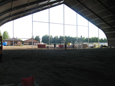 Lavan pystyttäjät näyttävät pieniltä tässä teltassa