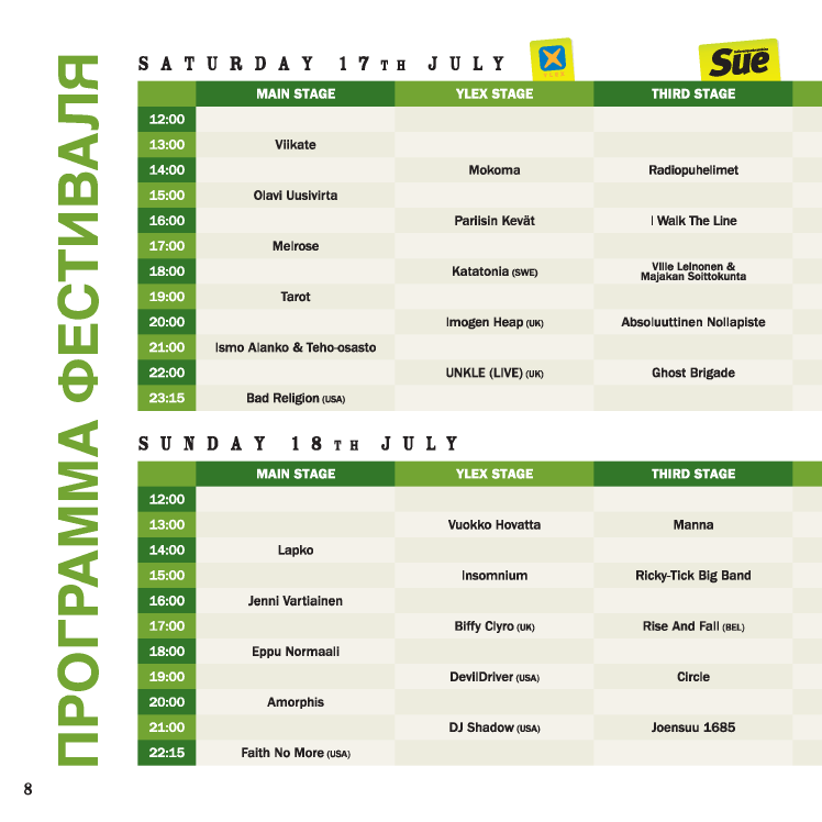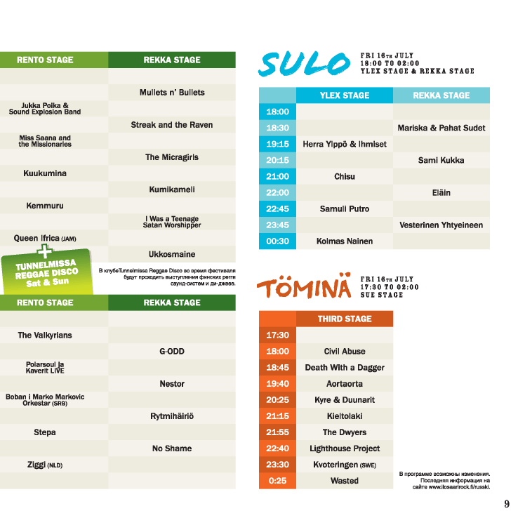 По пятницам, для самых фанатичных поклонников фестивальной жизни на территории Илосаари открыты два клуба Sulo и Tomina.