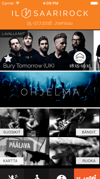 Ilosaarirock 2016 mobiiliohjelma on optimoitu puhelinlaitteille, ei Tablet tai iPad -laitteille.
