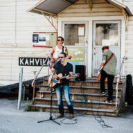 − Kävimme muutama tunti sitten tarkistamassa, mistä saisimme varastettua sähköt esitykseen. Halusimme soittaa täällä, koska ympäristö sopii hyvin musiikkimme. Tämä viikonloppu on tällainen, että voi toteuttaa hieman erikoisemmatkin päähänpistot, hymyilee solisti Veli-Pekka Koponen.