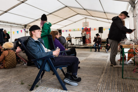 Lounge on auki läpi vuorokauden. Kännykkää voi käydä lataamassa jopa pikkutunneilla, mutta varsinaista ohjelmaa on päivällä. Tänä vuonna tuotantotiimi on satsannut festarikunnon kohotukseen.