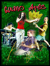 Guano ApesKohti yhä suurempaa suosiotaTämän kesän Ilosaarirockissa on tukuittain upeita naissolisteja lavoilla. Eräs heistä on saksalaisen Guono Apesin Sandra Nasic. Muita GA:n jäseniä ovat Stefan Ude (basso), Dennis Poschwatta (rummut) ja Henning Rümenapp (kitara). Reilu parikymppiset germaanipopparit ovat tuttuja monelle hienosta versiostaan vanhasta Alphaville-hitistä Big in Japan. Biisi Lords Of the Boards puolestaan oli tehty Itävallassa pidettyjen lumilautailun EM-kisojen viralliseksi tunnariksi. Näistä jo tietääkin, että tämä kvartetti saa soitannollaan aikaan sen mitä pitääkin eli bileet. Nimenomaan soitannollaan, sillä kyseessä kuitenkin on nimenomaan soittajista koottu yhtye, joka itse soittaa, itse tekee biisit ja itse tulkitsee musiikkinsa. Huhti-toukokuun bändi vietti suuren osan aikaansa kiertäen Amerikan ihmemaata Creedin kanssa. Kesään mahtuu Ilosaarirockin lisäksi kymmenisen muuta festarikeikkaa ympäri Eurooppaa. Keski-Euroopassa bändi on huikean suosittu ja levyjä on myyty satoja tuhansia, vaikka taustalta on usein puuttunut tuikitarpeelliseksi tunnustettua radiosoittoa. Sitä soittoa alkaa varmasti riittämään nyttemmin, kun bändin uusin levy Don't give me names singahti toukokuussa listakärkeen Saksassa, Itävallassa ja Portugalissa. Heinäkuussa nähdään kuinka Guono Apesin musiikki saa rinteen bailaamaan. |