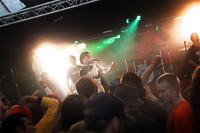 Ruotsalainen Nine antoi annoksen metallia ruoka-annoksiaan nauttiville hevareille. Keikkansa aluksi bändin solisti toivotti kaikki kovin ystävälliseen sävyyn tervetulleiksi sanoin fuck you all. Matka ruotsinlaivalla oli kuulemma ollut kummallinen. Heti ensimmäisesti biisistä lähtien eturivin yleisö nosteli pirunsarvia ilmaan solistin nostassa lyödessä lisää löylyä kiukaaseen. Pikku hiljaa yleisö lämpeni ja alkoi mossata innokkaasti. Kitarariffit olivat raskaita, mutta jymäkän iskeviä aktiin. Kummallista, että noin siloposkisista ja lyhythiuksisista miehistä voi lähteä niin kovaa mörinää. Sari Sudensalmi |