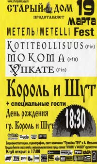 Valuimme Stary Domiin toisen bändin soittaessa. Viikate oli aloittanut illan kuulemma erittäin menestyksekkäästi, slaavilainen tunnelma oli uponnut paikallisiin mainiosti. Nyt lavalla metelöi paikallinen Koma. Perusmetallia, pitkätukkahippejä, joista lähti meteliä varsin miehekkäällä volumella. Koman jälkeen Kotiteollisuus kasasi nopeasti kamansa, teki tarvittavat säädöt ja heitti kahdeksan biisin mittaisen setin yleisölle, josta ei oikein ottanut selvää. Eturivin tytöt katsoivat suoraan silmiin ja hymyilivät, muutama ihminen tanssi raivokkaasti ja äijänköriläät katselivat toimintaa hymyssä suin ja peukkua näyttäen. Ja ne peukut eivät olleet alaspäin. Jostain taaempaa oli kuulemma kuulunut buuauksiakin, mutta niistä bändillä ei ollut mitään havaintoa. Sitä ei kuule mitä ei halua kuulla. Mokoman miksaaja Aaltonen kävi vetämässä pariin biisiin taustalaulutkin ja täytyy sanoa, että setti oli mukavin pitkään aikaan. Johtuisikohan se siitä, että Kotiteollisuus on ollut tauolla? Nerokasta, kyllä vain. Mutta kyllä yleisöstä huokunut tunnelmakin vaikutti asiaan. Siellä oltiin nimittäin aidon hämmentyneitä. Ja se on aina hyvä. Paikallinen Korol i Shut tuli lavalle seuraavaksi. Ennen setin alkua bändin kitaristi kävi vinkkaamassa Hynyselle, että tämä näytti aivan Zakk Wyldeltä. Hieman imarteli, ja siitä Hynynen saikin kimmokkeen lähteä yläparvella olevaan VIP-tilaan vonkaamaan naisia. Naisista ei ollut tietoakaan, mutta äijät kävivät jututtamassa kyllä. Mukava jutella ihmisten kanssa, jotka eivät osaa sanaakaan englantia. Muutaman vodkapaukun jälkeen jutustelu alkoi kuitenkin sujua varsin helposti, jonkinlainen uskonnollinen hurmio valtasi mielet ja yhteisen kielen löytyminen oli tosiasia.