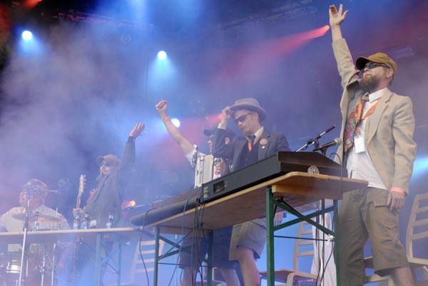 Eläkeläiset and their energetic music made the crowds dance Humppa and forget their hang-over, or as it is called in Finnish “krapula”. No real festival without at least a few raindrops, as it happened just a short time ago. So there was no need for the workers to cool the crowd with water as the rain made sure that everybody get his own cooling.
