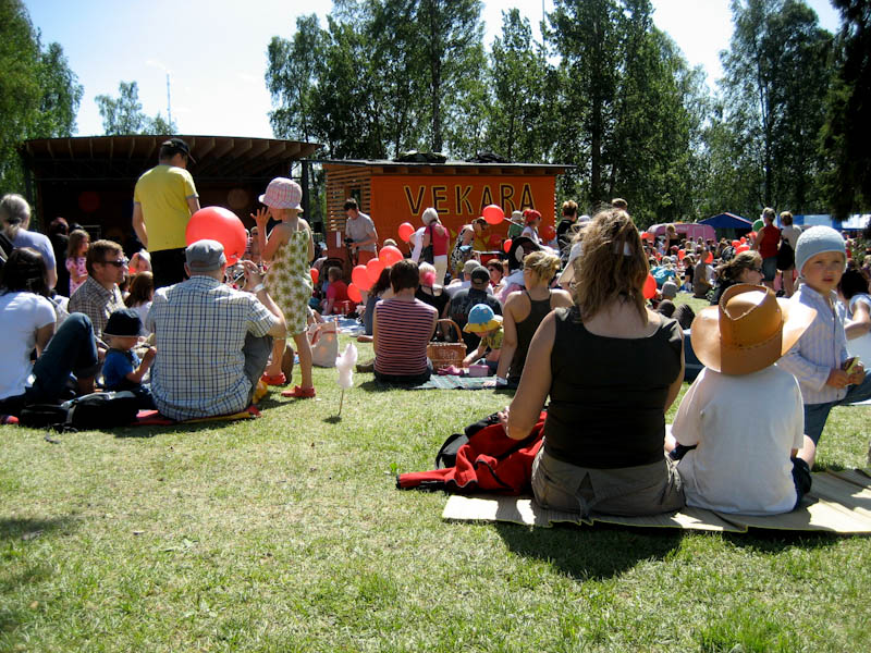 Samalla kellonlyömällä kuin Ilosaarirock alkoi varsinaisessa Ilosaaressa tenaville suunnattu Vekararokki, johon lasten lisäksi oli myös eksynyt aikuisia. Kaikkiaa yleisöä oli noin 3500. Ennen kiitämistään Ilosaarirockin rekkalavan keikalle, Tohtori Orff & Herra Dalcroze lämmitteli soittamalla lapsille ja aikuisille puolilta päivin. Joensuulaisille tuttu bändi on kuuluisa omintakeisista soittimistaan. Esimerkiksi rummut ovat pahvilaatikoita ja niitä soitetaan tiskiharjalla.