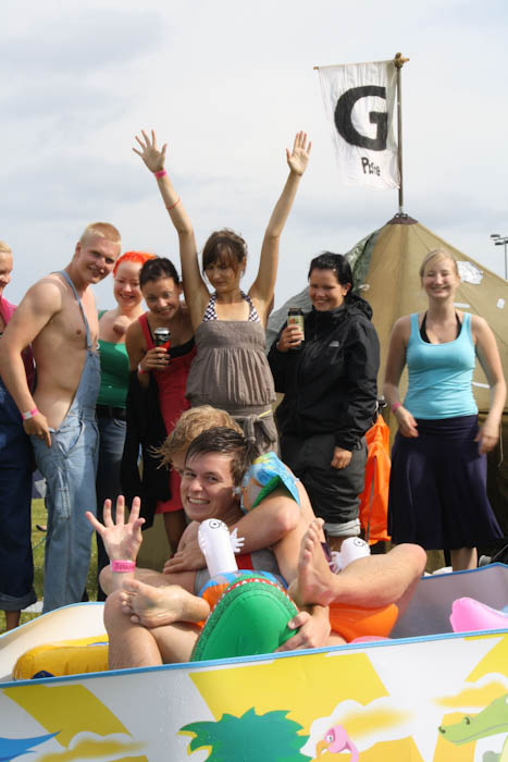 Ilosaarirockin leirintäalueilla sattuu eteen aina yllättäviä ja hauskoja tilanteita. Monelle festarikonkarille jo varmasti tuttu näky G-piste oli taas löytänyt tiensä Ravileirintään. G-piste-teltan lähettyvillä verkkotoimitus bongasi perjantaina oudon näyn: Kaksi miestä juoksi vastaan naisten uimapuvut yllään.