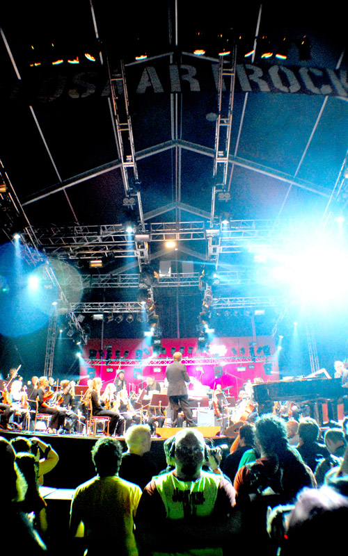Päänvaivaa aiheuttivat erikoiskokoonpanon poikkeuksellisen suuri soittajamäärä ja huima instrumenttikirjo. Lähes kolmenkymmenen klasarijätkän, italotaitureiden ja superenergisen Mike Pattonin mahduttaminen samalle lavalle oli aikamoinen haaste, mutta onnistui lopulta hyvin. Ei lavalle montaa postimerkin kokoista tyhjää plänttiä kuitenkaan jäänyt. Festariolosuhteissa myös roudauksen on sujuttava ilman yhtään seisautusta. Aikaa turhalle arpomiselle ja nortin poltolle ei yksinkertaisesti ole.