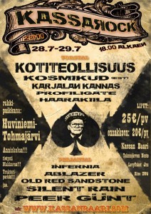 Kassarock Tohmajärven Huviniemessä 28.-30.heinäkuuta. Ennakkoliput myynnissä Kassan Baarilla, Tohmajärven Nesteellä, Joensuun Levy-Eskoilla ja Kiteen Infossa.
