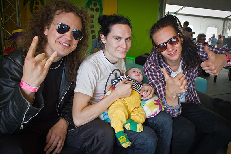 Jos haastattelun aikana käydään läpi Prätkähiiret, Johnny Deppin viikset ja kilpikonnat, pöydän toisella puolella ei voi istua kukaan muu kuin joensuulainen progemetallitulokas Nerve End. Ilosaarirock-sunnuntain alkuillan haastatteluun mennessä bändi oli rummuttanut Laulurinteellä keikan, joka oli vetänyt vertoja Kerubissa huhtikuussa 2012 rytistylle debyyttivedolle. Painija-asut olivat lentäneet nurkkaan, mutta festaritunnelmaa riitti vielä sunnuntainakin, kun herrat tahtoivat välttämättä etsiä haastattelua varten otetun kuvan kuvausrekvisiitakseen vauvan.