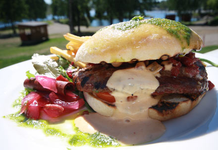 - Luomuhärkäburgeri, salaatti ja ranskalaiset 16 euroa