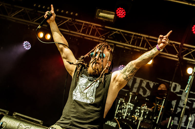 Ilosaarirockin Sunnuntain saivat kunnian aloittaa kotikaupungin ikiomat metallityöläiset. Distress of Ruin on paiskinut hommia niska limasta kiiltäen jo useita kuukausia. Keikkailun ohella pihalle puskettiin maaliskuussa kovatasoinen Predators Among Us -EP, jonka studioguruna on häärinyt progressiivisen metallimusiikin monitoimimies, niin ikään Joensuulaisen Nerve Endin Joonas Kaselius. Biisimateriaalin hiominen, yrittäminen ja erehtyminen kuuluu levyllä, sekä näkyy livenä. Distress of Ruinin runsaalla melodialla maustettu death-thrash on nimittäin rosoisuudestaan huolimatta niin huoliteltua, ettei bändin uskoisi aloittaneen taivaltaan vasta 2010.
