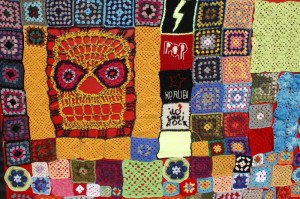 Puristan koukkua rystyset valkeina ja tihrustan työtäni otsa rutussa, kun paikalle pelmahtaa punatukkainen hymysuinen nainen, joka kantaa mukanaan isoa kassillista tilkkuja. Hän on Ilosaarirockin tuottaja Katri Kilpiä, virkkaustempauksen äiti.