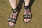 Seuraavaksi tiellemme osui Krista, joka kertoi katu-uskottavien sandaaliensa olevan juuri hankitut. Uutuudenkarheus ei näissä kengissä kuitenkaan haittaa, vaan ne palvelevat uskollisesti koko rokin ajan – ja erittäin mainiosti.