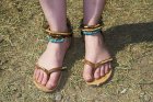 “Eihän nämä mitenkään hyvät kengät kävellä ole, on niin paljon kiviä tiellä”, Minna kertoi, mutta lisäsi myös, että nämä kengät näkevät festareita vain kaksi tuntia – lopun aikaa Minnan jalkoja koristaa tennarit.