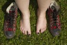 Buutsien ihailun laannuttua suuntasimme katseemme alaspäin, tarkemmin sanottuna kuvaajamme Marian jalkoihin. Kolme Ilosaarirockia ja neljät festarit kaikenkaikkiaan kokeneet tennistossut näyttävät ikäänsä suhteutettuna yllättävän hyväkuntoisilta. Siihen löytyi kuitenkin yksinkertainen syy.