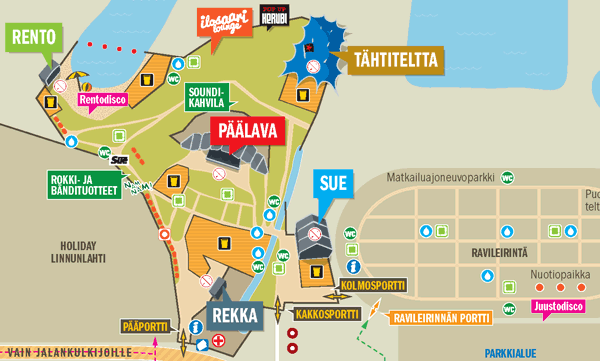 Rannekkeenvaihtopisteet sijaitsevat jäähallin vieressä. Pisteet ovat avoinna perjantaina klo 15–23 ja lauantaina klo 11–19, jonka jälkeen rannekkeenvaihto siirtyy pääportille, jossa rannekkeita vaihdetaan klo 23 asti. Sunnuntaina rannekkeenvaihto sijaitsee pääportilla klo 12–20. Ravi- ja Niittyleirinnässä on rannekkeenvaihtopisteet, jotka palvelevat leirintäalueiden asiakkaita. Sulo-klubin ja Töminän ennakkolippuja vaihdetaan rannekkeisiin myös Kakkosportilla.