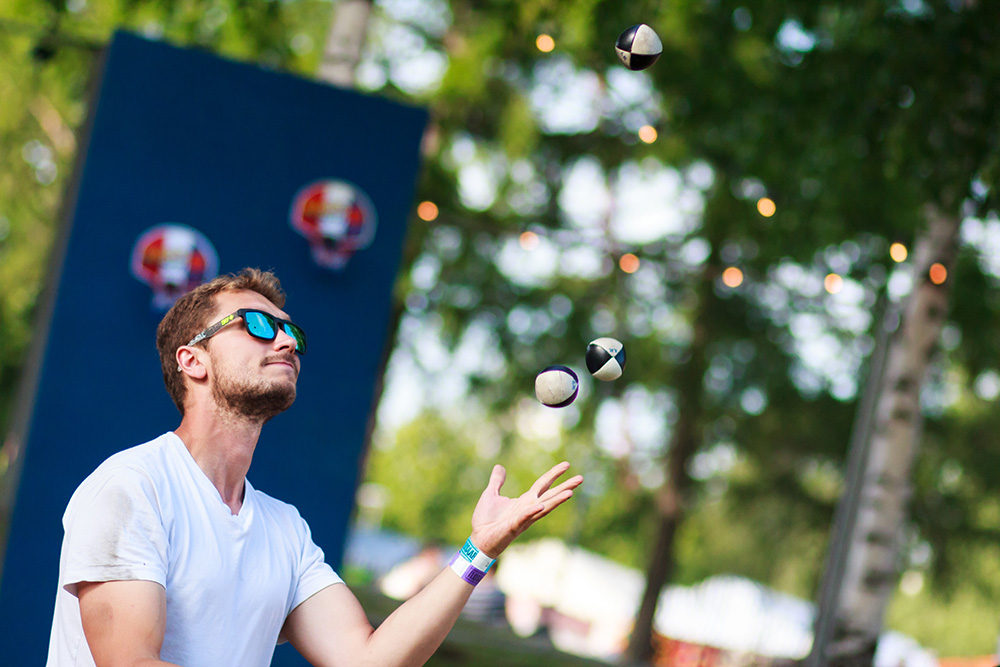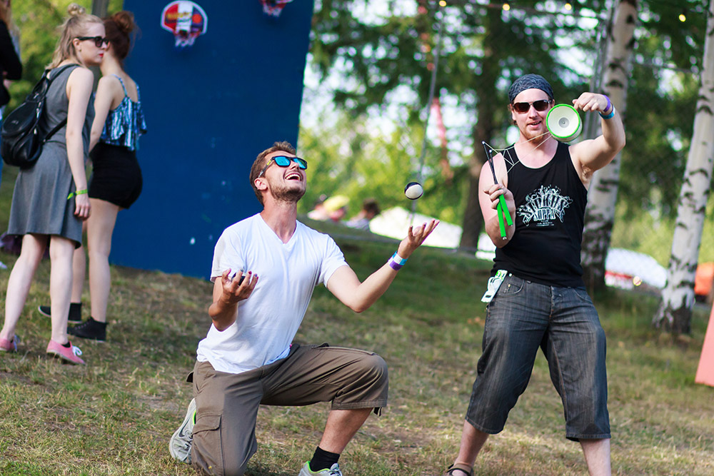 Kun päivän liikunta-annos on saatu, on aika siirtyä rauhallisempien aktiviteettien pariin. Alueella voi ihailla alue-esiintyjiä, kuten pallojen ja diabolon kanssa temppuilevia jonglöörejä. Karnevaalialueella saa myös testata pallonheittotaitojaan, ottaa hassuja valokuvia tai kuulla tulevaisuutensa ennustajalta.