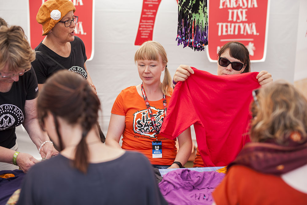 Kun festarin teemana on ekologisuus, mikä olisikaan parempi paikka toteuttaa sitä kuin Pohjois-Karjalan Marttojen oma tuunauspiste. Siellä vaatteet saivat uuden elämän ja festarikävijä uuden, rockimman vaatteen.