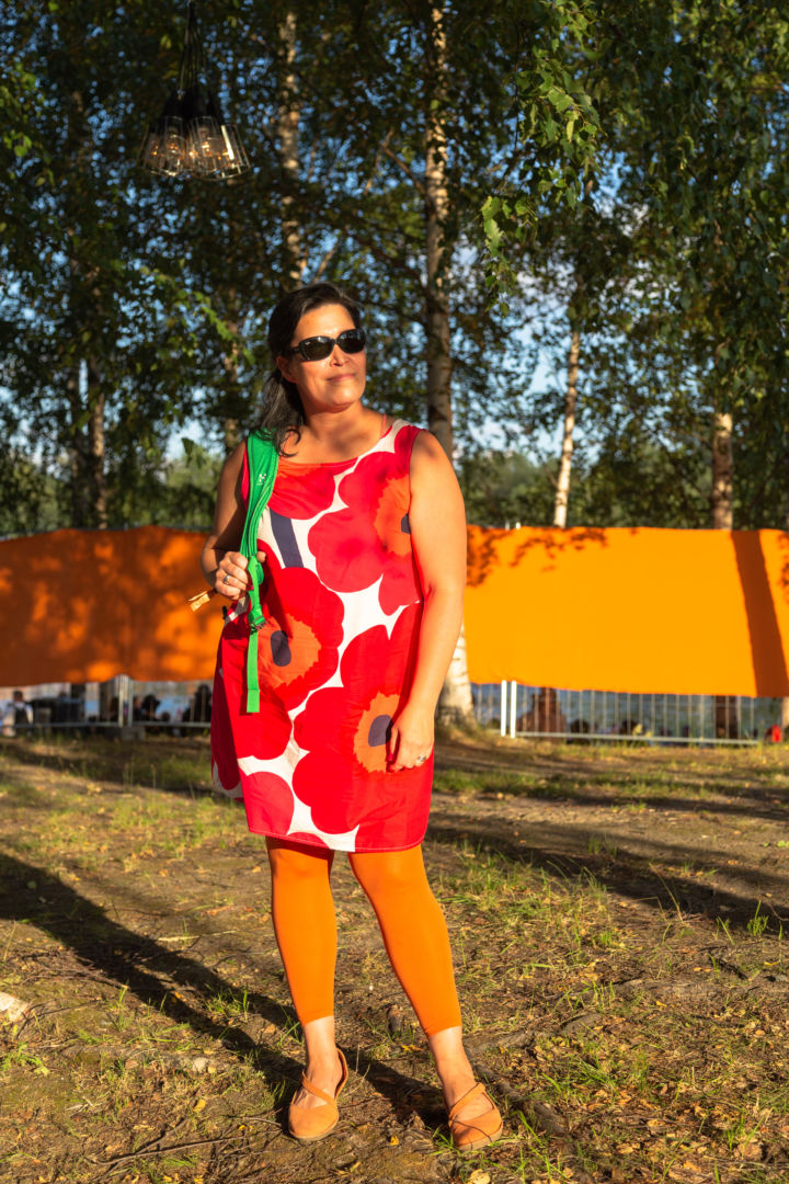Vakkila-Mattinen luottaa suuresti kenkiinsä – onhan niissä talsittu jo kolmet Ilosaarirockit. Marimekko-kuosisen mekkonsa hän on ommellut itse. Hän ei jaksa muistaa, kuinka monet rokit hänellä on jo takanaan, mutta kertoo tapahtuman olevan itselleen kesän odotetuin.