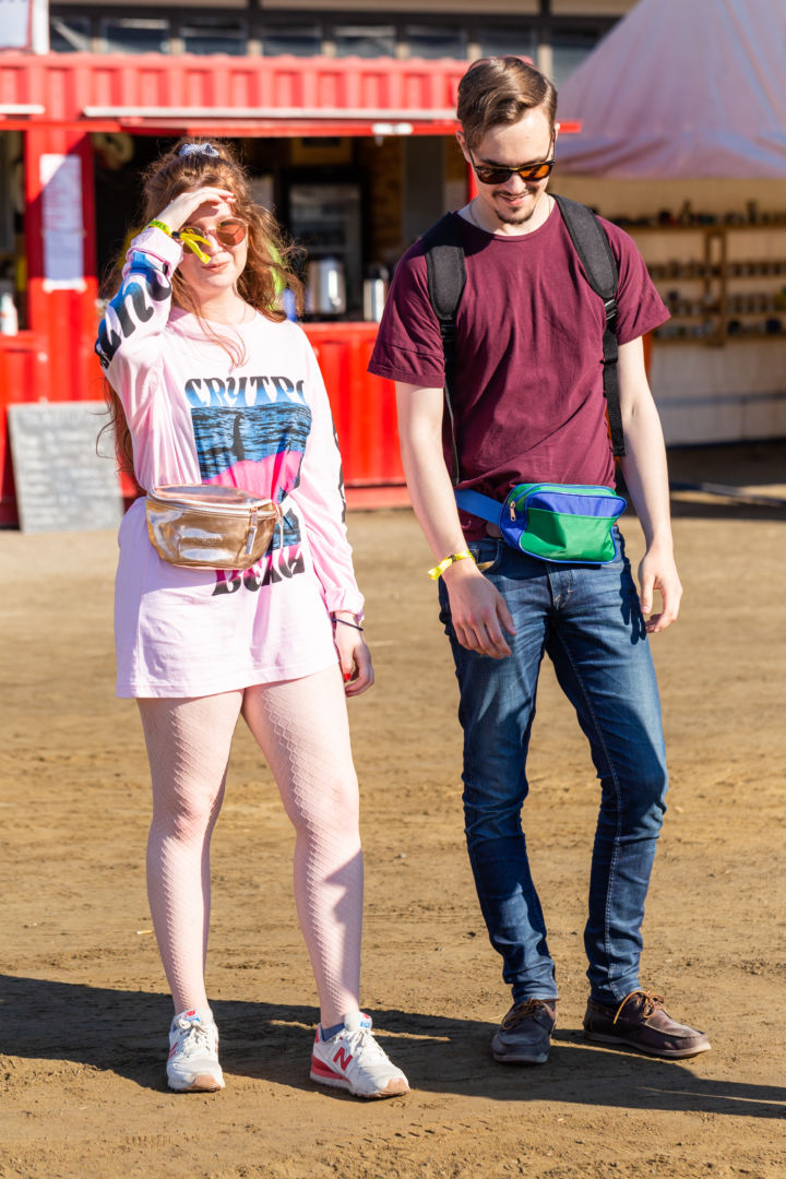 Akseli Lunden jatkaa omasta tyylistään: – Tyttöystäväni päätti somistuksesta. Vyölaukku on Darian sukulaiselta saatu. En koe, että pelkällä vyölaukulla pärjää festareilla, vaan se kaipaa rinnalleen repun.