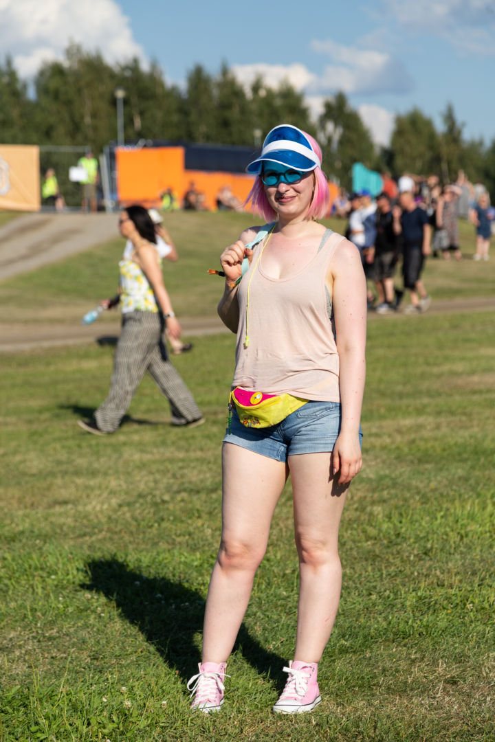 – Ihan parasta! Vyölaukun kautta syntyi loput ideat festariasusta, ja meidän koko kaveriporukallamme on samanlaiset aurinkolipat.